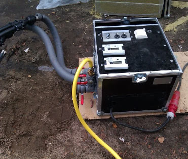 Da die Messung an einer Erdwärmesonde durchgeführt wird, wie sie auch später im Sondenfeld Anwendung findet, wird hierfür eine Bohrung mit dem entsprechenden Ausbau benötigt. Die eingebaute Sonde verbleibt als Bauwerk und wird später in das berechnete Sondenfeld eingebunden. Der Vorgang der Bohrung stellt einen Erdaufschluss dar, welcher im wasserrechtlichen Sinn genehmigungspflichtig ist und so ist für diese Leistung ein Antrag auf wasserrechtliche Genehmigung zu stellen. Ist der Antrag genehmigt, kann unter Einhaltung einer Anmeldefrist bei der genehmigenden Behörde von i.d.R. 14 Tagen die Bohrung erfolgen. Nach dem Einbau der Erdwärmesonde und dem fachgerechten Verpressen der Bohrung ist ein Abkühlzeitraum des Verpressmittels je nach Zementgehalt einzuhalten. Die Hydratationswärme beim Aushärten würde die Meßergebnisse sonst verfälschen, da eine zu hohe Ausgangstemperatur zu messen wäre. Die Feldmessung selber wird über 72h mittels einer mobilen Messeinrichtung durchgeführt. Dabei werden die relevanten Daten aufgezeichnet.